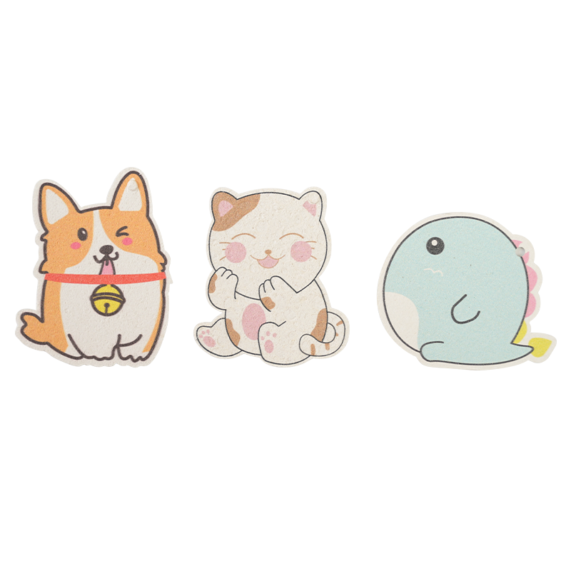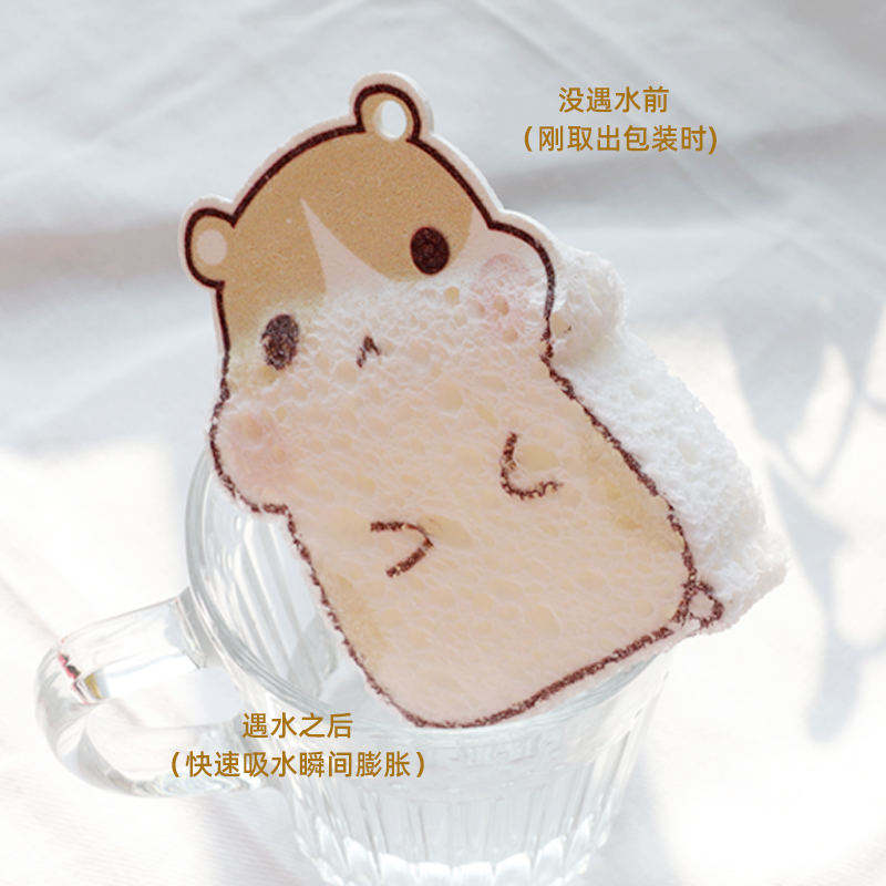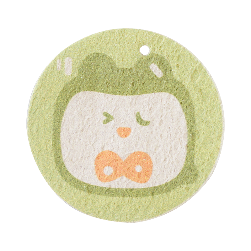 اجازه دهید شکل دیگری از اسفنج چوبی توله سگ را به شما نشان دهم، اسفنج سلولز فشرده. این توسط پنبه خمیر چوب پس از پرس گرم در دمای بالا تولید می شود. اسفنج سلولز فشرده نه تنها تمام مزایای اسفنج پنبه خمیر چوب را حفظ می کند، پس از فشار دادن، حجم اسفنج را کاهش می دهیم تا هزینه حمل و نقل کم شود، همچنین می توانیم آرم یا طرح های دیگر را روی سطح چاپ کنیم. که تمیز کردن را خنده دارتر می کند.