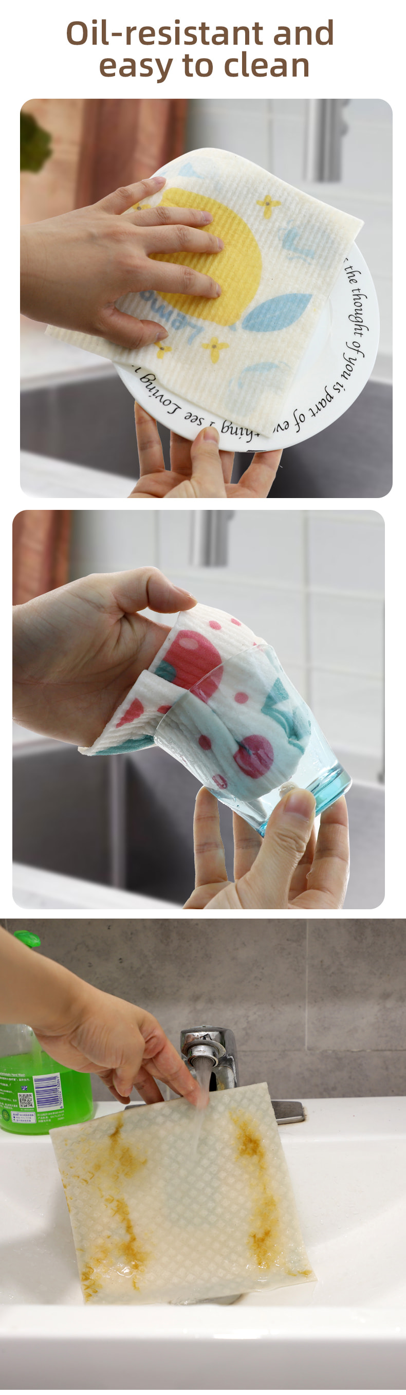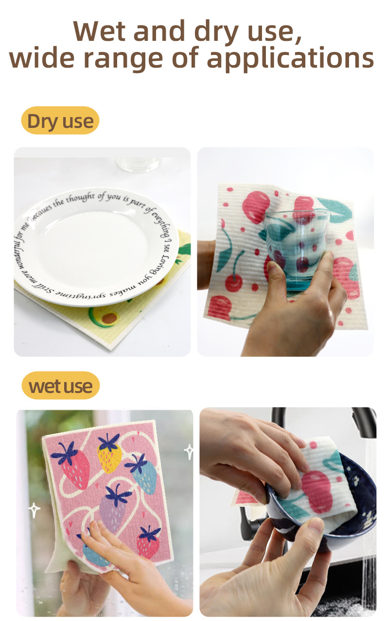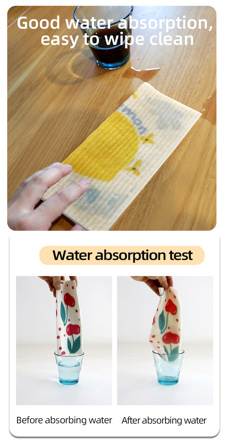 پارچه اسفنجی سلولز طبیعی، نرمی خوب، جذب آب خوب، تمیز کردن آسان، سازگار با محیط زیست و تجزیه پذیر، بادوام، خشک و مرطوب، بدون ترس از روغن
