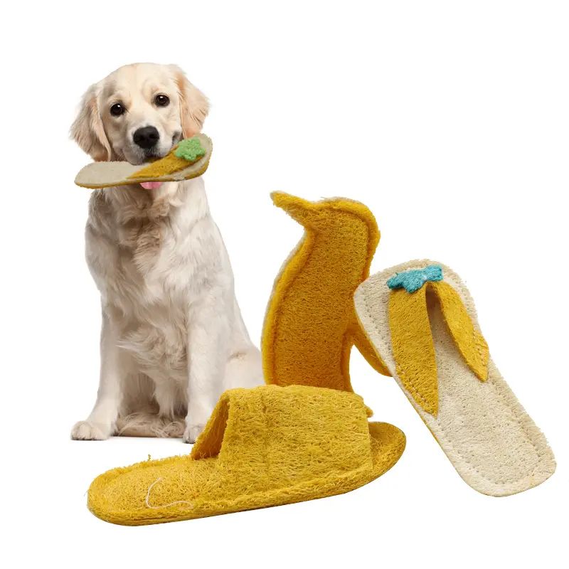 اسباب بازی های لاتکس به طور کلی نرم هستند و در رنگ های مختلف ساخته می شوند. برخی حتی صدای جیر جیر می دهند تا اسباب بازی جذاب تر شود. این اسباب بازی ها به طور کلی برای سگ هایی مناسب هستند که عادت گاز گرفتن تهاجمی ندارند. اسباب بازی های لاستیکی و نایلونی برای کسانی که عادت گاز گرفتن متوسطی در سگ بازی دارند، بادوام تر و مناسب تر هستند. این اسباب بازی ها اغلب سوراخ می شوند تا بازی با آنها برای گاز گرفتن سگ ها سرگرم کننده تر شود. اسباب بازی های طناب معمولاً از نایلون یا پنبه ساخته می شوند و برای سگ هایی با عادات گاز گرفتن متوسط مناسب هستند.