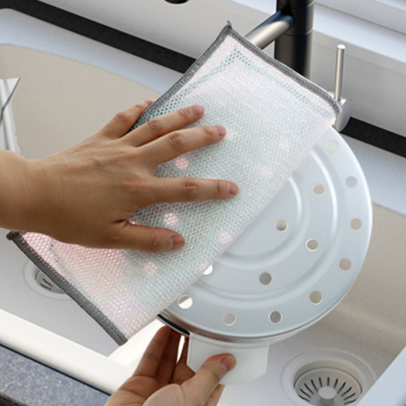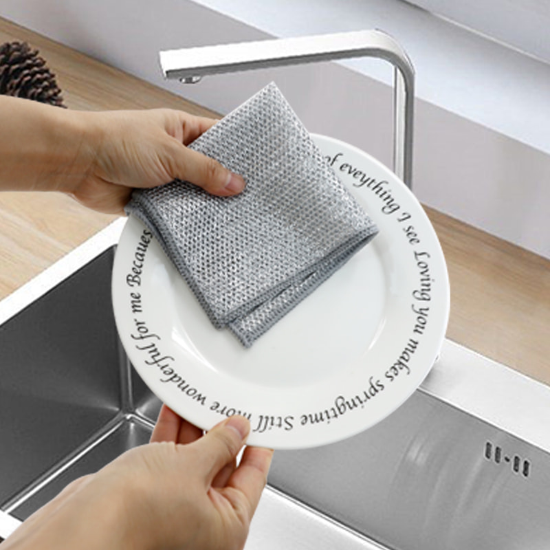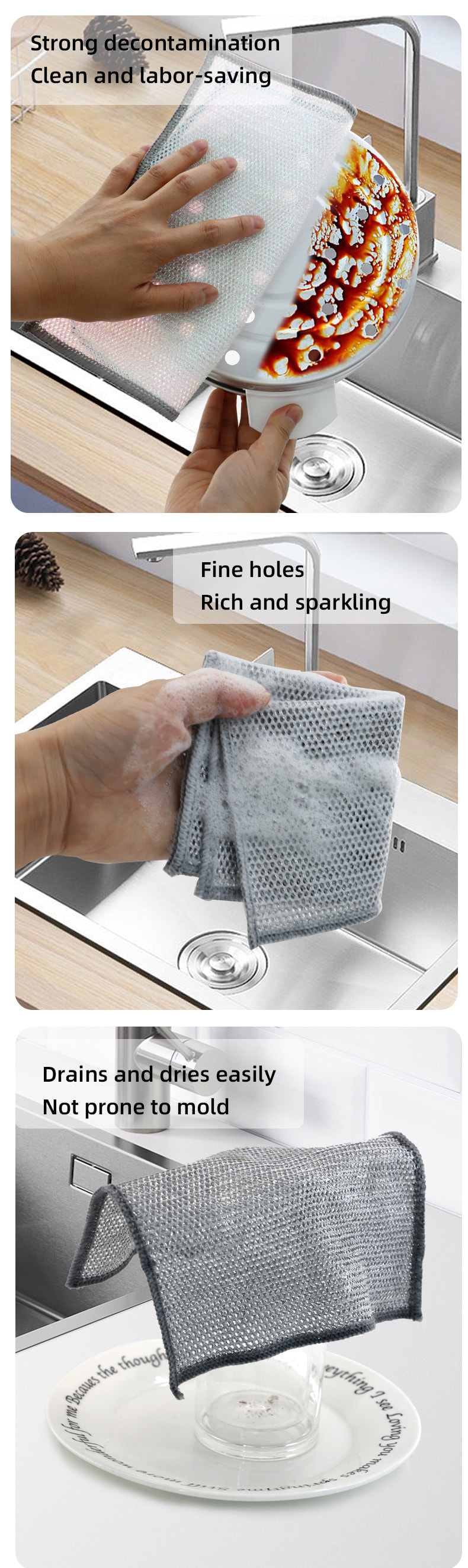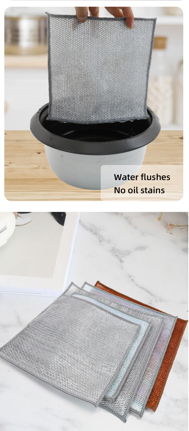 پارچه ظرفی سیم نقره ای دو طرفه، ساخته شده از ابریشم برنز، بسیار گران است. بدون پوشش، بدون پودر، بدون محو شدن؛ بدون روغن، بدون روغن، خراش دادن قوی اما بدون آسیب به ظروف پخت و پز. ساخته شده از ابریشم رنگارنگ، روغنی و نچسب است و ارزش ظاهری بالایی دارد. بدون پوشش، بدون افت پودر، بدون محو شدن رنگ. خراش دادن قوی اما بدون آسیب به ظروف پخت و پز.