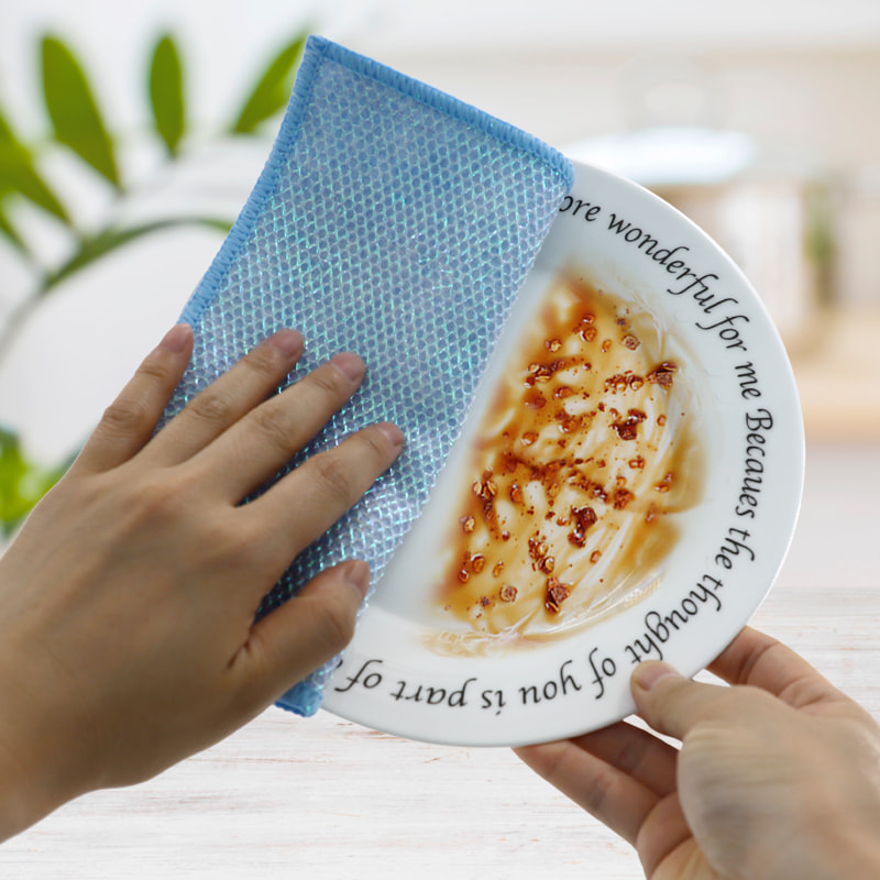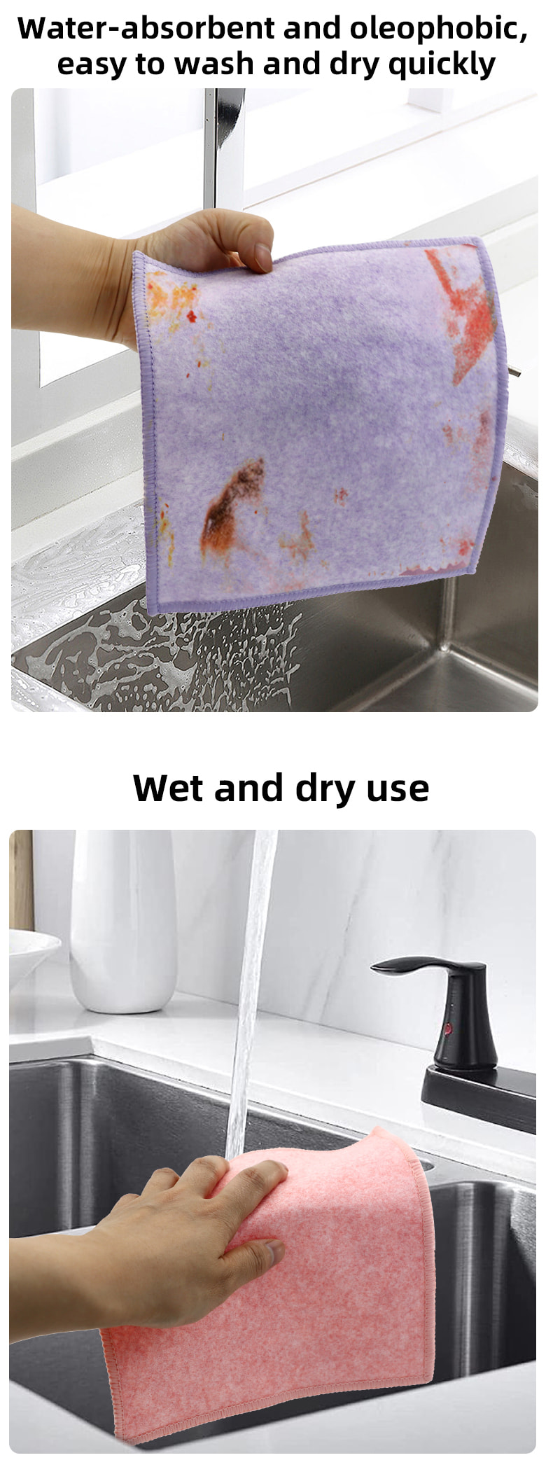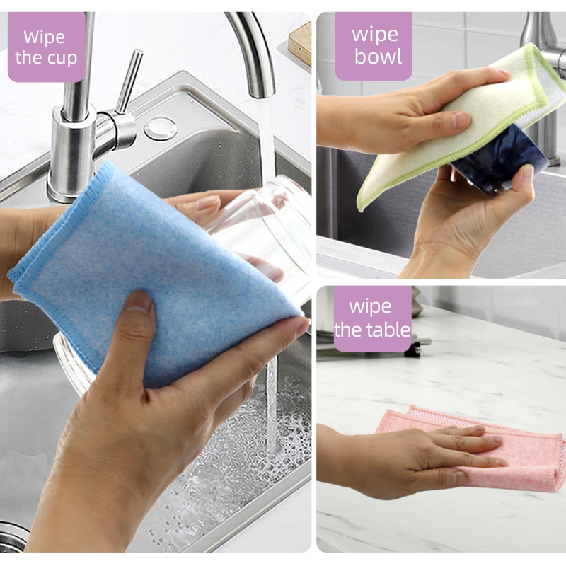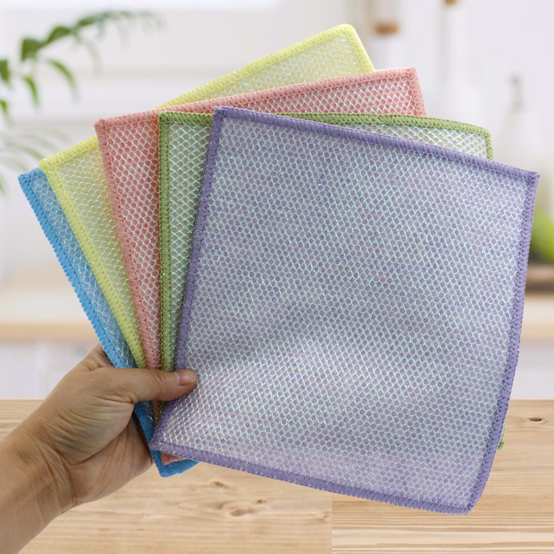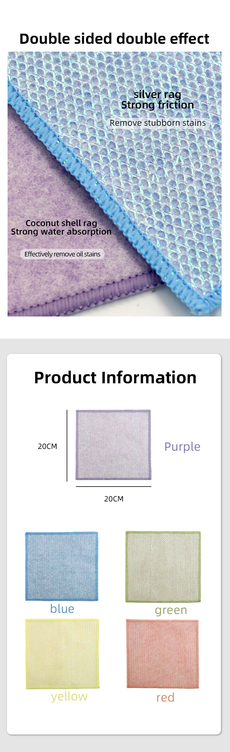 ساختار خاص شکل، رنگارنگ، ظاهر بالا؛ یک طرف پارچه تمیز کننده رنگارنگ با قابلیت خراش دادن قوی است و طرف دیگر پارچه مشبک است که عملکرد دوگانه تمیز کردن را در حین خراش دادن انجام می دهد. فاقد روغن بوده و قابلیت جذب آب قوی دارد. یک طرف آن با ابریشم رنگارنگ با طرح های مختلف کاشته شده است و روی دیگر آن سطح پارچه ویسکوزی غیر روغنی و جاذب آب است که زیبایی دارد و می تواند عملکرد دوگانه شستشو و شستشو را از یک طرف انجام دهد.