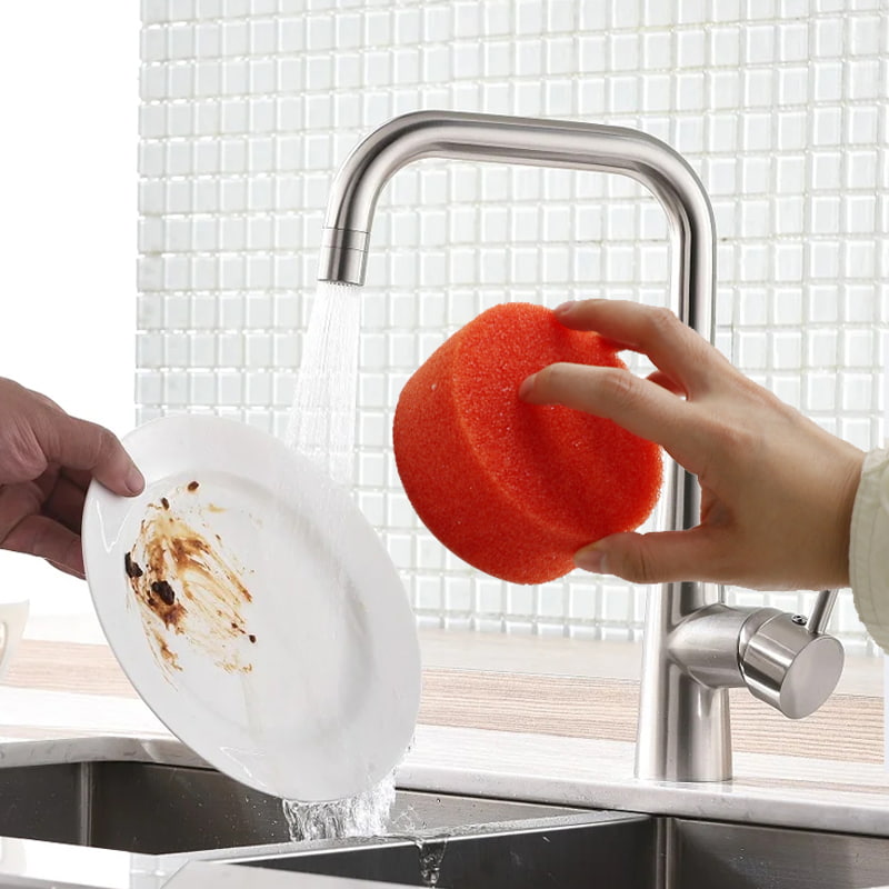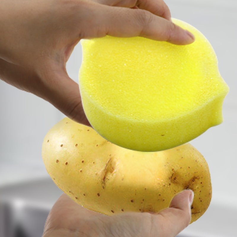 هنگامی که در معرض آب گرم قرار می گیرد نرم می شود: هنگامی که دمای آب بالاتر از 32 درجه باشد، اسفنج به سرعت نرم می شود و می تواند به آرامی سطوح ظریف (مانند پوشش های نچسب گلدان، ظروف شیشه ای، میوه ها) را تمیز کند و از خراشیدگی جلوگیری کند.